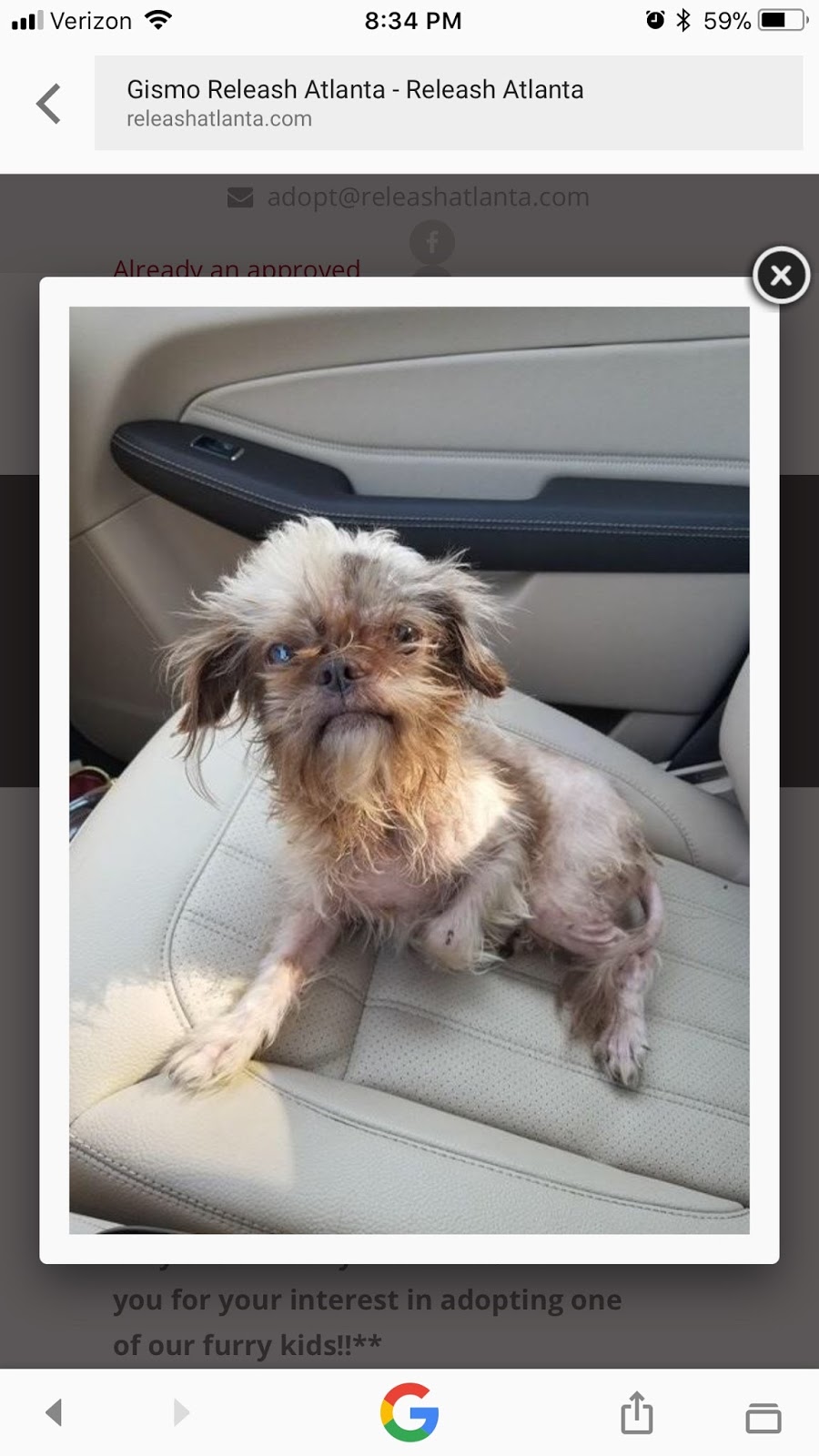 Yesterday Gismo had a meet & greet. He's being adopted today! His mama is as quirky as he is - match made in heaven. He'll travel to the islands on charted plane (they own houses on 2 islands), homemade dog food, an adorable little old lady fur-sister to share the fun and a mama who spoils her animals rotten! Just what he deserves.
